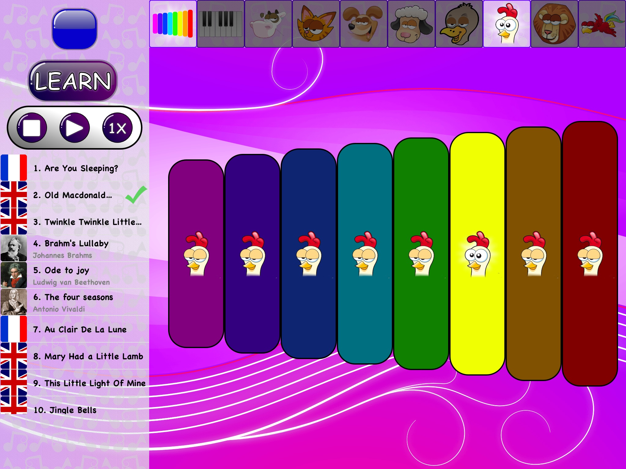 Appli très sympa. Grace aux sons des animaux, les fous rires sont garantis avec mon petit. En utilisant le mode dapprentissage, il (4 ans) a déjà appris "frère Jacques" ! :-)