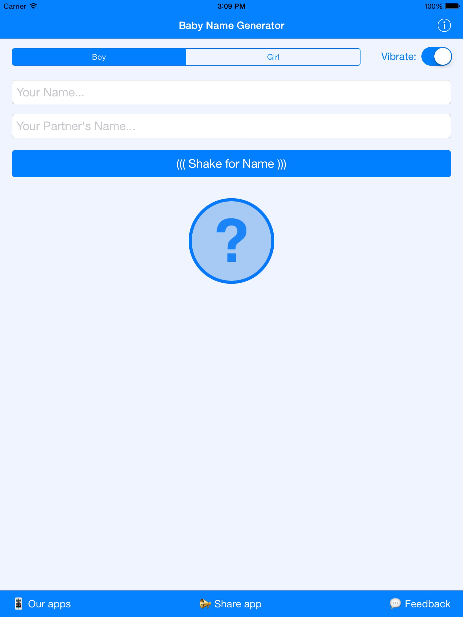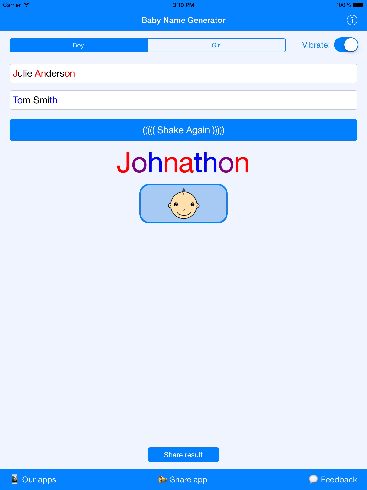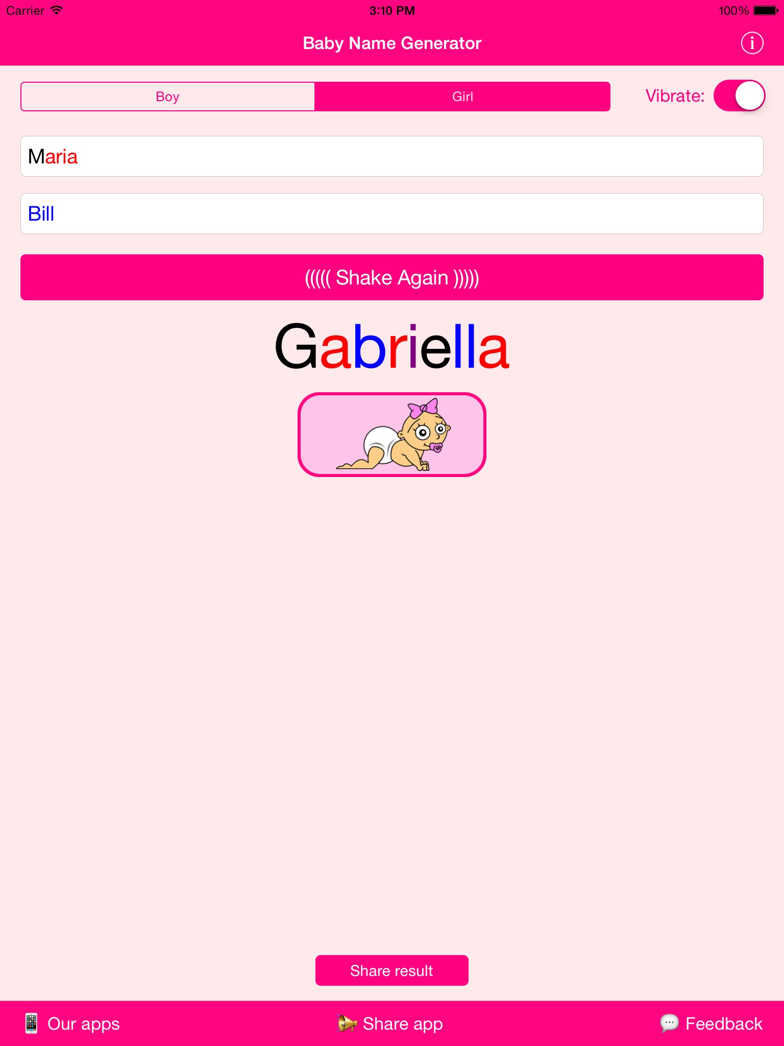 Imagine if you could come up with Baby names by simply entering your name and your partners name into a device and giving it a quick shake. Well now you can thanks to the Baby Name Generator.
