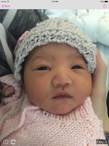 This is what this app is about: it is dedicated to capturing photos of your little ones so you can keep track of his or her growth. Take as many or as few photos as you like. The app works out automatically how many day it is after birth and sort the photo accordingly so you can see your baby growing up day by day. Sharing functions are accessible throughout the app, allowing you to easily share photos with family and friends.