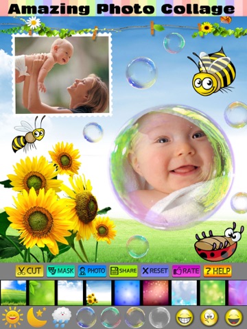 * Unique Photo Masks to create wonderful photo shapes, including bubbles,flowers, stars etc