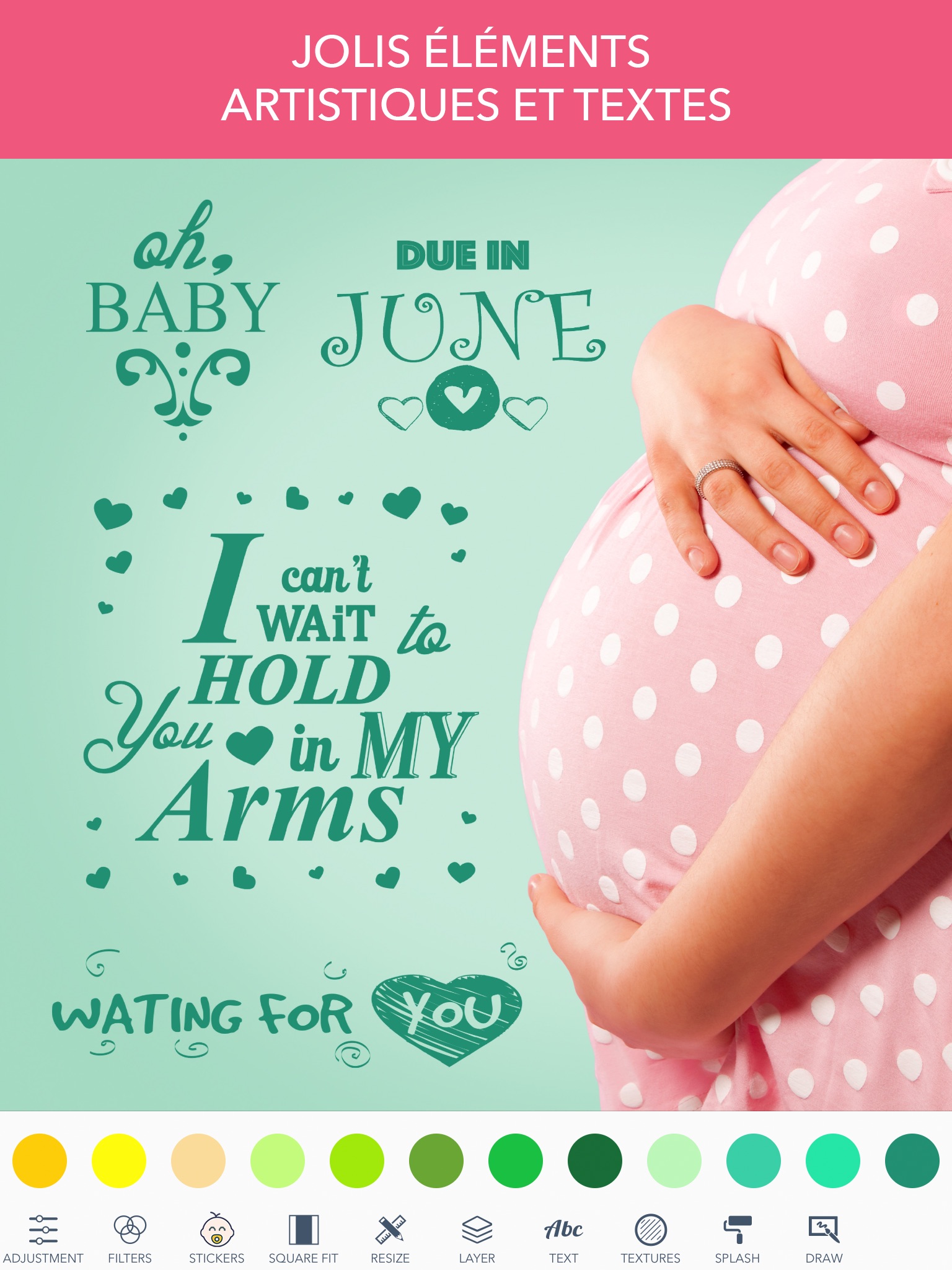 • Stickers – milestone stickers help mark your journey by week, month, weight, length, and other developmental benchmarks. A large number of cutie & funny artworks help you tell your story more vividly.