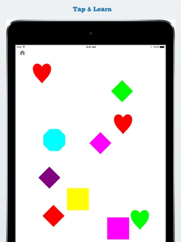Shapes fly apart with accompanying fun sound affects, the name of the shape, or the colour of the shape.