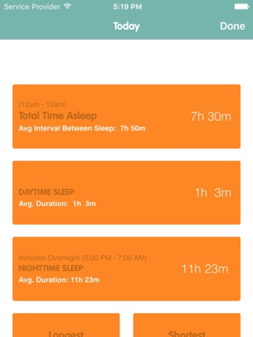 I cant even count the number of apps I have tried in the past. They all required more effort and forethought than this one. This app is so easy to use, so intuitive and user-friendly, that I now chart my kids and my husbands sleep pattern. This app is also handy for helping me track my childs hyper vs. non-hyper times of the day. The optional note section attached to each time (for no extra charge) is indispensable. Thank you for making a simple, sweet, user friendly app to help restore the calm in my use! Best app ever!!!