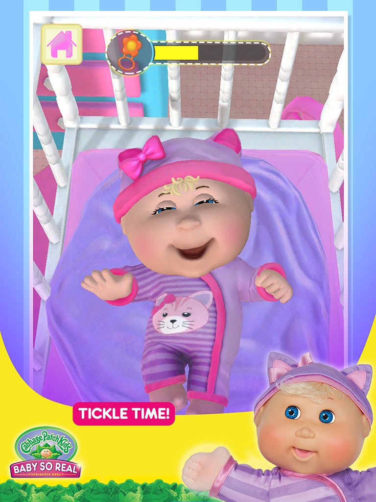 The free Cabbage Patch Kids® Baby So Real™ app acts as a virtual nursery where you can play with your baby, feed her, change her diaper, burp her, and share your love and care. You can also play Cabbage Patch Kids® games, watch video clips and earn Baby Points to get additional virtual accessories, fashions, room décor and more!