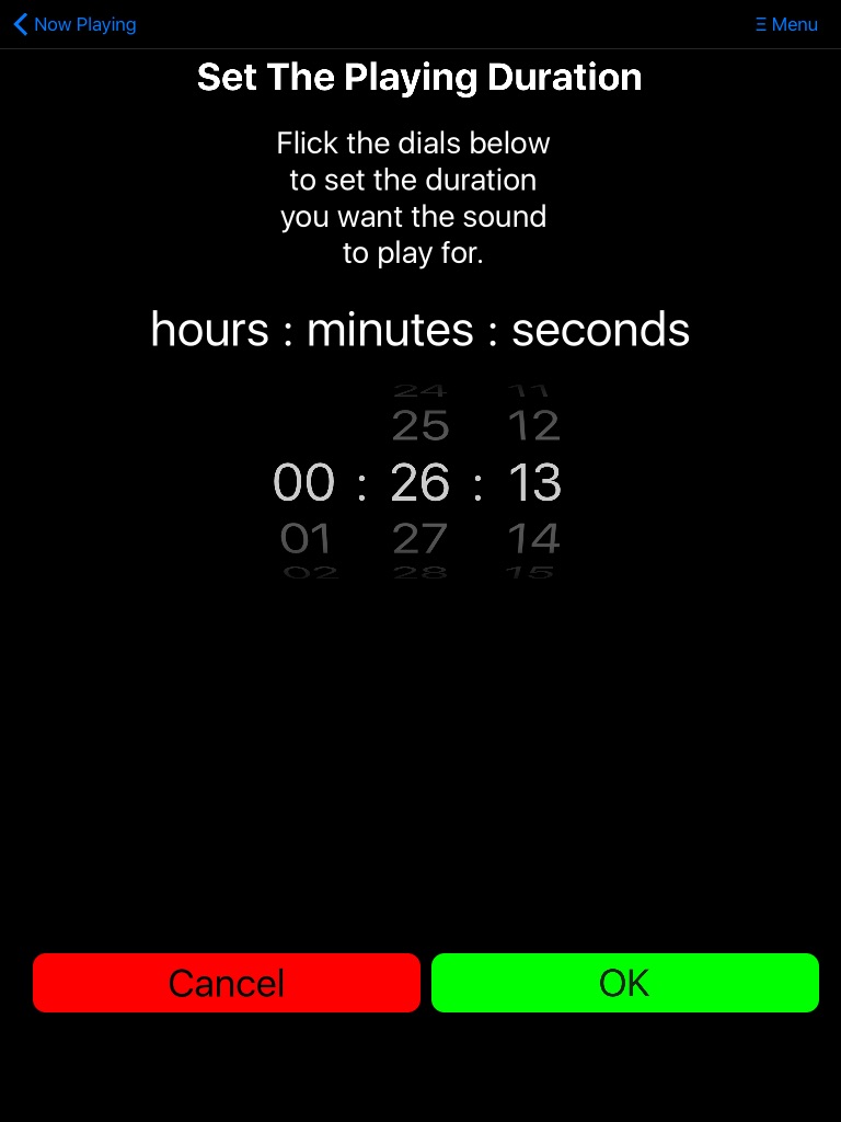 Choose from the different low frequency sounds, relaxing ambient noises or lullaby music. Repeat each sound for your chosen duration.