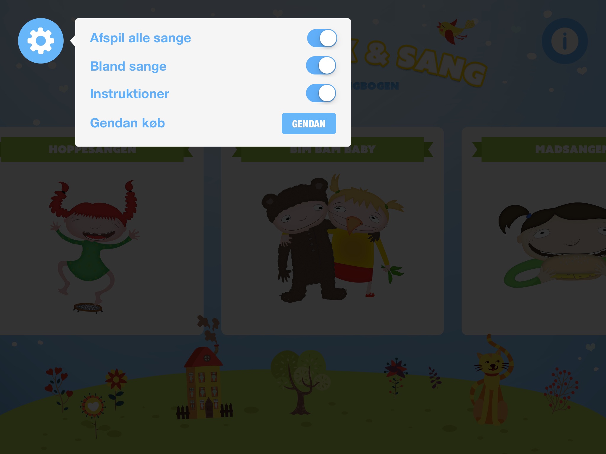 • Børnevenligt interface med flotte håndtegnede illustrationer