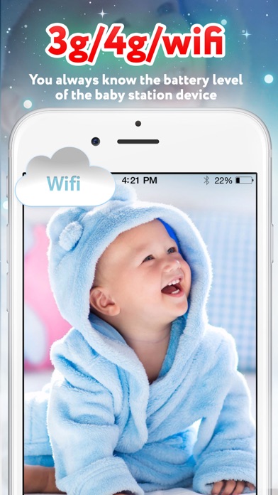 Baby Monitor 3G supports both WIFI and 3G/LTE networks. You can have a baby monitor with unlimited year that can be used anywhere without worrying about a weak WiFi signal.
