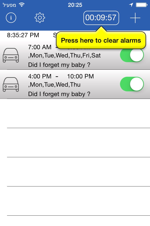 This app was designed and developed in order to help the parent not to forget your kid in the car.