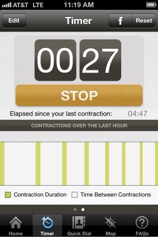 Going into labor? Vanderbilt University Medical Center’s easy-to-use app helps you time your contractions. Just tap the start button to begin timing; tap it again to stop. The app records duration and time between each contraction.
