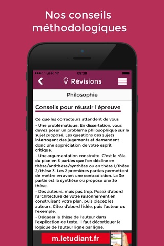 Les conseils méthodologiques : en juin 2018, vous passerez votre bac S. En quoi consistent les épreuves ? Comment réviser dici au jour J ? Quelles sont les attentes des correcteurs ? Comment gagner des points et éviter den perdre ? Nos professeurs vous apportent de nombreuses clés pour vous préparer aux épreuves.