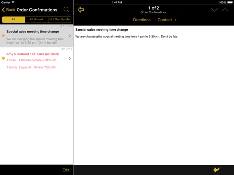 BackBar+™ is software designed for owners or top managers of on premise establishments that sell wine, spirit and beer. Registered users are able to create BackBar™ accounts for their employees and staff to receive push notifications of order issues, order confirmations and urgent messages. Registered users can also send orders to wholesaler reps using PocketAdvantage™, see training material, and see digital presentations for new products.