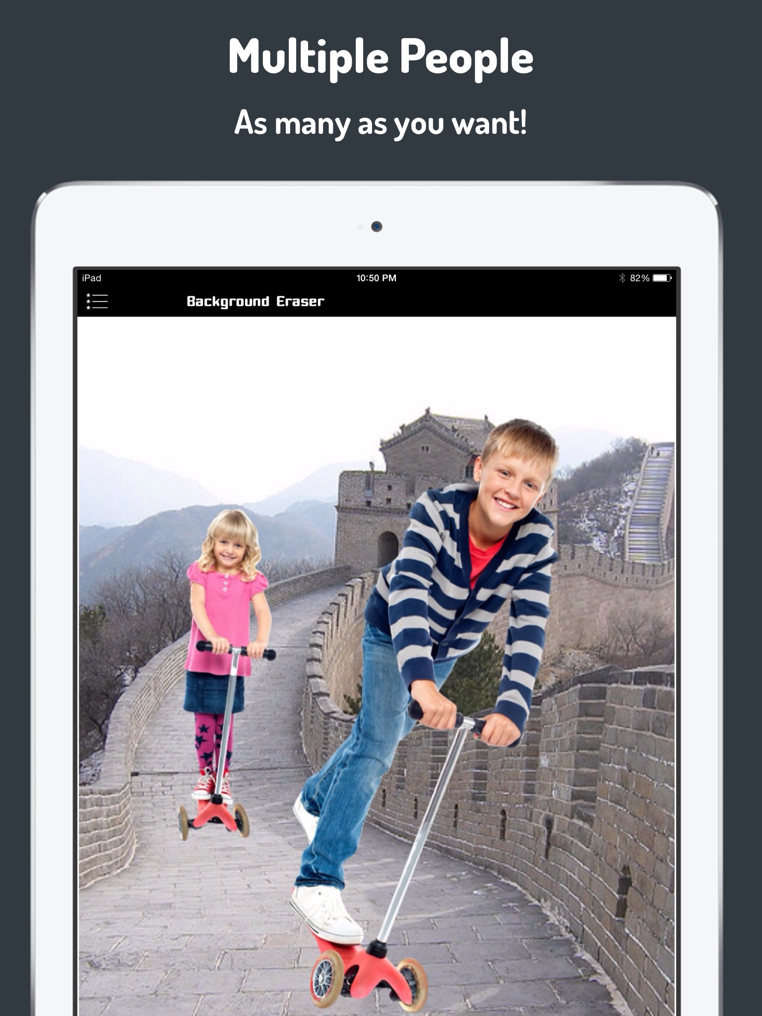 - Add your photos by easily removing the background in two easy steps: