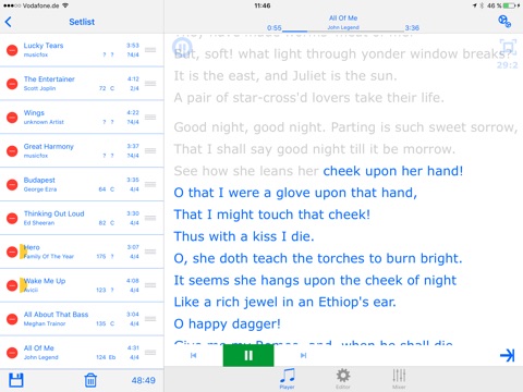 To avoid copyright issues the song lyrics in the screen shots are replaced with Romeo and Juliet quotes. BTW: A standard functionality of Backing Band.