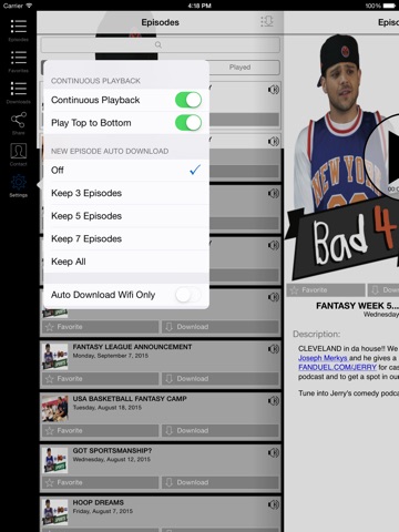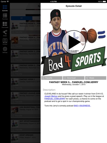 With this app you are always connected to the latest episodes and the show. Quickly star episodes and save them to a list so you can easily enjoy them over and over! This app has a Car mode too! Rotate your phone to display larger playback controls. It is the best and most convenient way to access BAD 4 SPORTS.