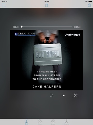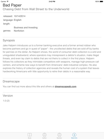 This app is an unabridged professional audio recording produced by Dreamscape Media LLC.