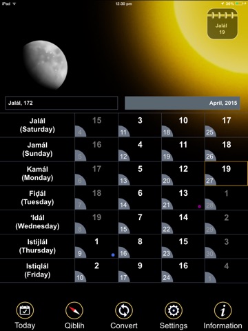 The Badí’ Calendar APP provides the user to with many functionalities such as;