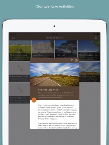 The Badlands National Park app by Chimani boasts rich, detailed information on the striking geologic deposits of one of the world’s richest fossil beds located in South Dakota, including: