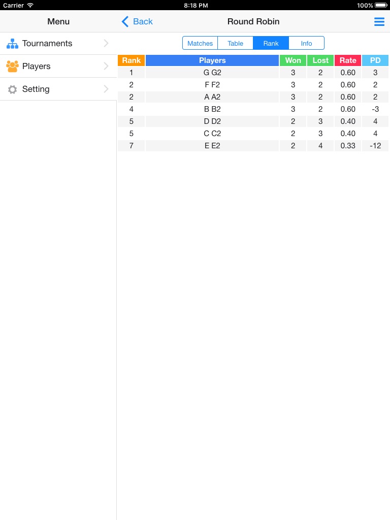 Make "Round Robin" and "Knockout" small tournaments easily.