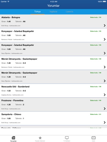 Usta yorumcuların yorumlarını, en fazla oynanan bahislere, futbol ve basketbol için tv rehberine tek bir uygulama üzerinden erişebilirsiniz.