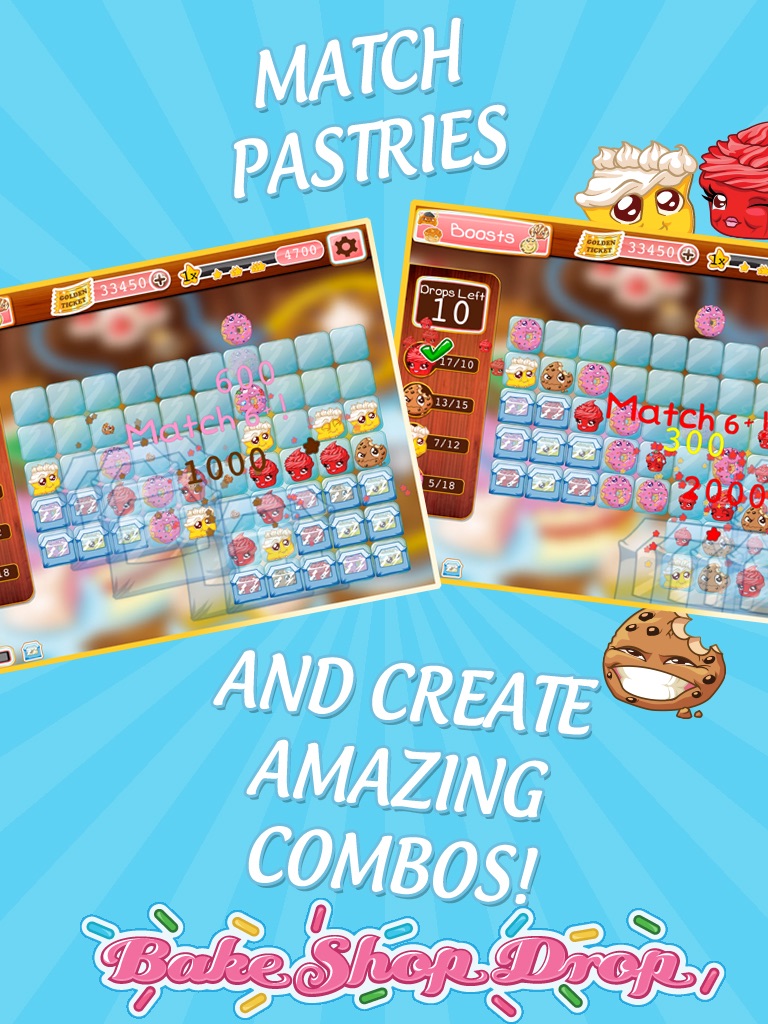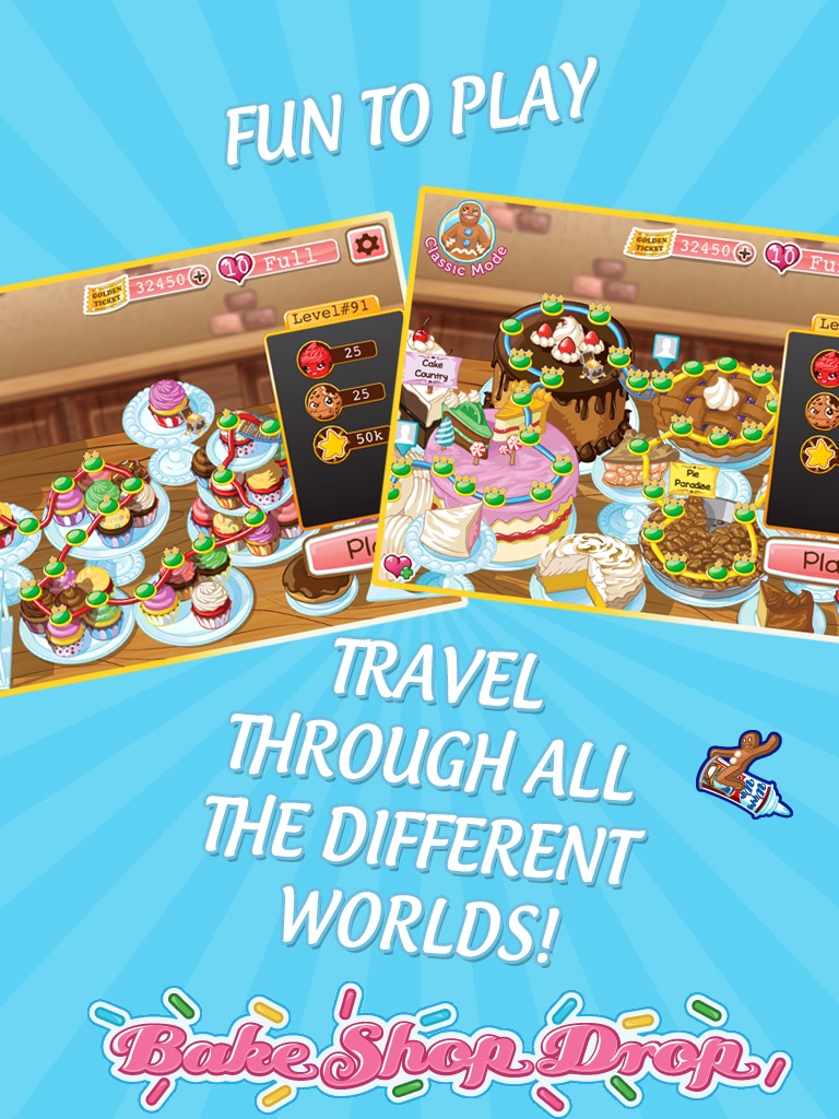 6 Million Players have enjoyed Bake Shop Drop on Facebook, and now were bringing it to your iPhone, iPad and iPod touch! Take your craving for pastry fun on the go!