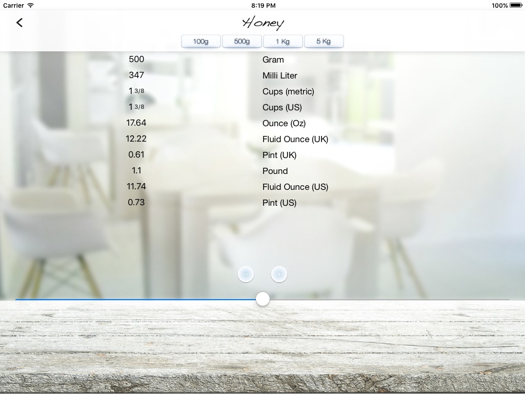 It convert between metric, US and UK measurements, with an easy to use slider. No calculator needed..