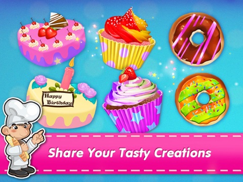 After you find the ingredients in the kitchen, help the Bakery Chef make, bake, and decorate donuts, cakes, and cupcakes.