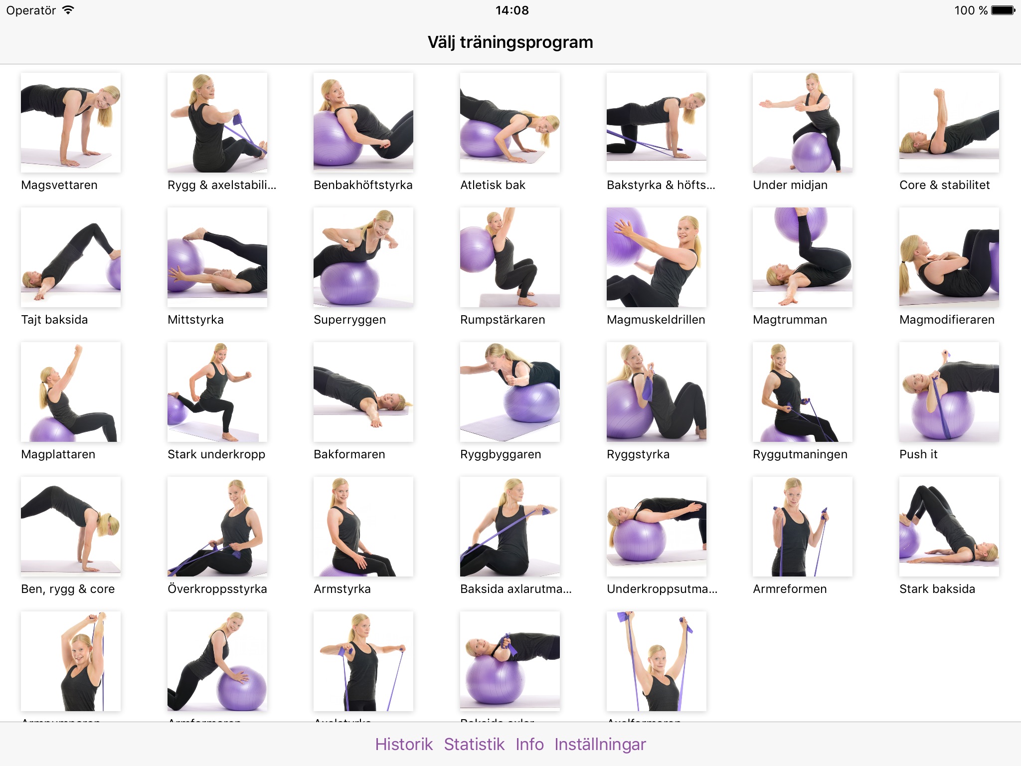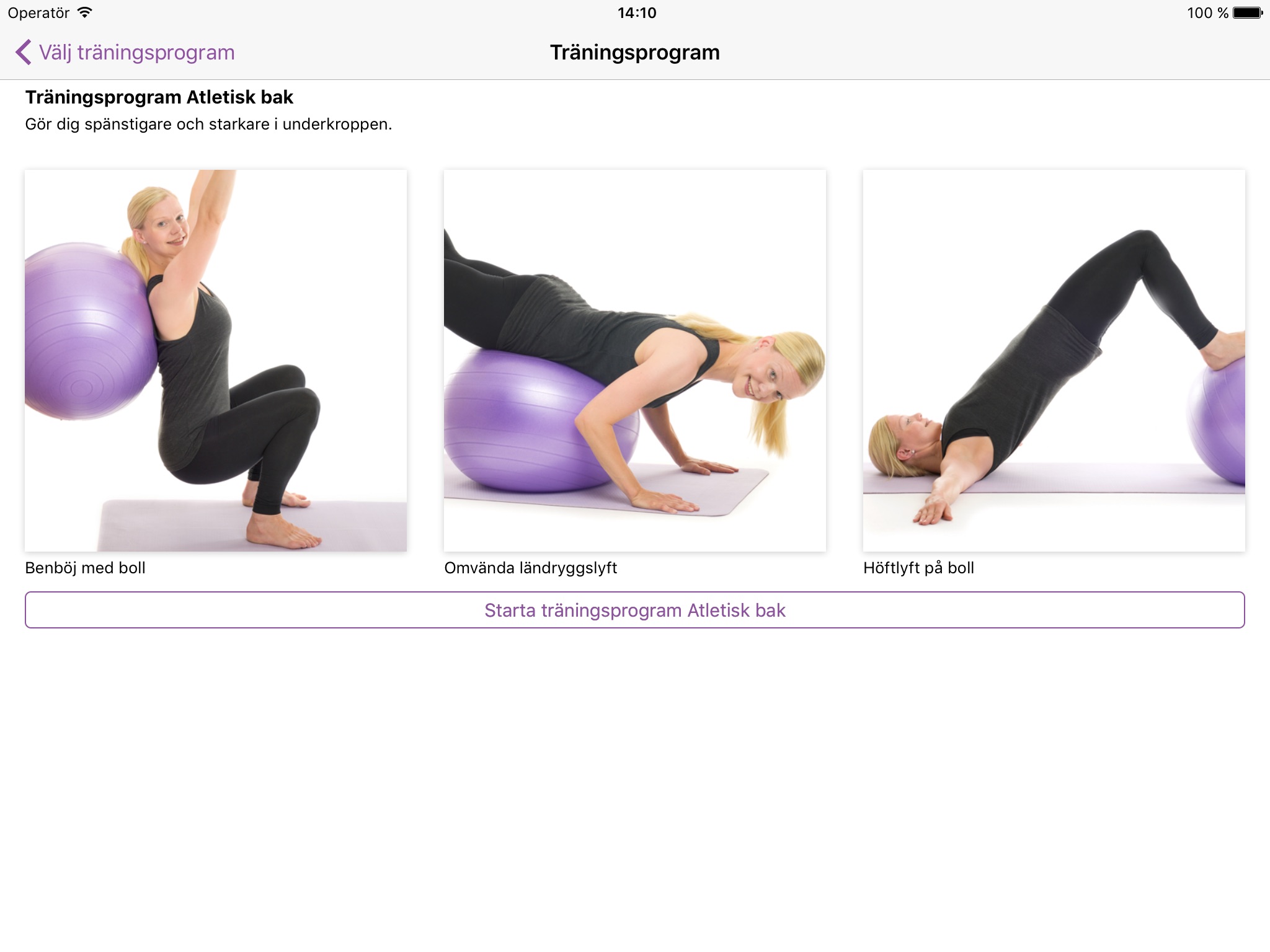 The app guides you thru the workout. All exercises are presented by video and come with detailed technique descriptions in text. You will also find tips and alternatives to all exercises if you are a beginner or very well trained.