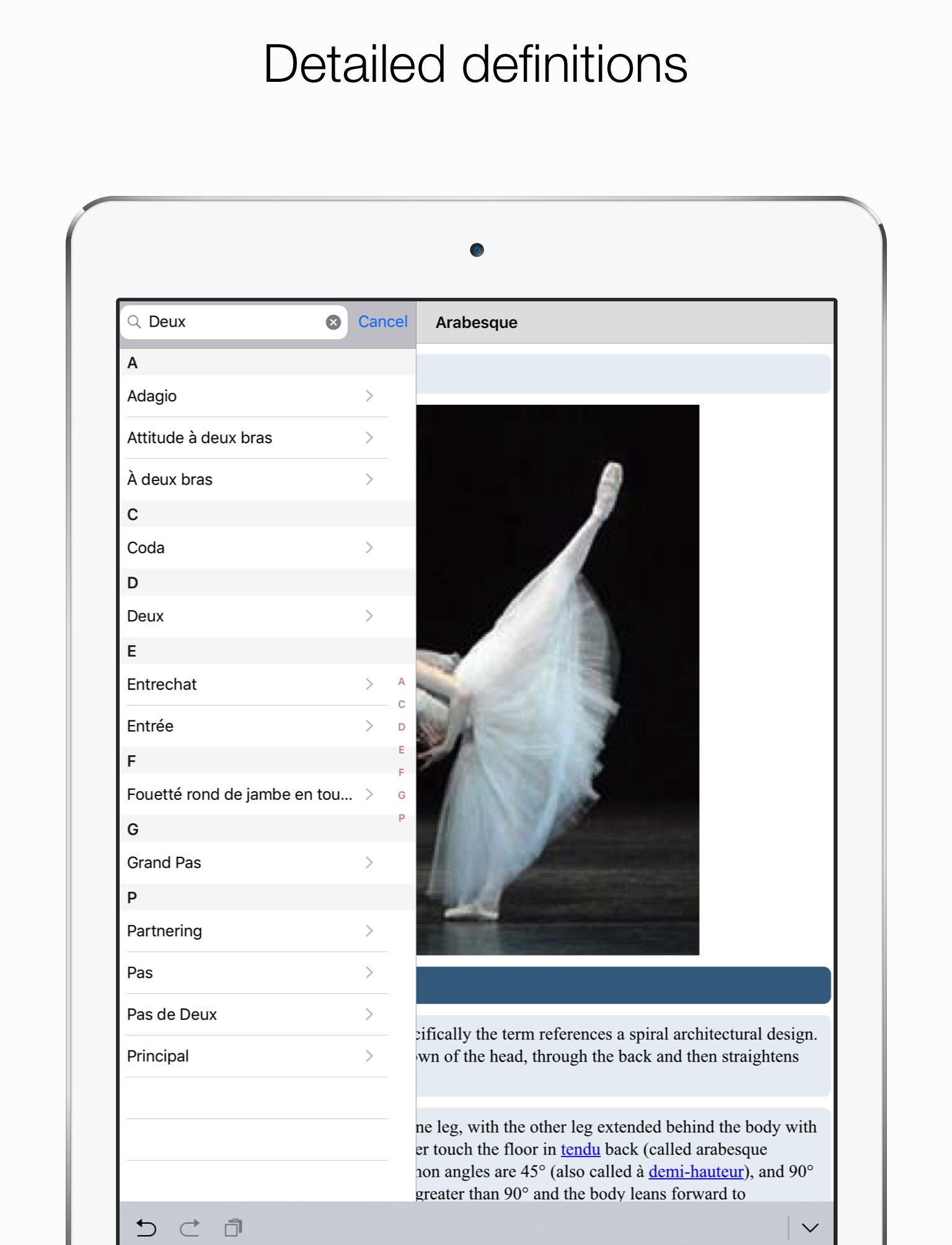 This is a pretty good app to have for a beginner who may not have Grants Technical Manual and Dictionary of Classical Ballet handy and wishes to look up common terms. The developers have been providing regular updates so far and the list of terms covered is expanding too. A decent app and a good buy, IMHO.