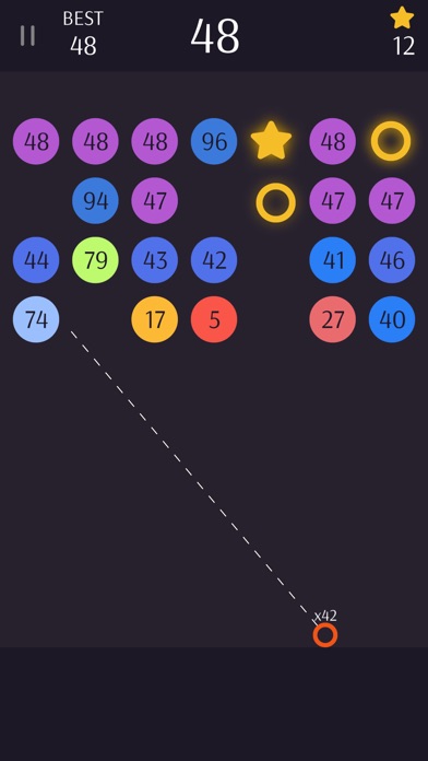 Swipe your finger to shoot the ball and bump against as many objects as possible. With every hit, the numbers on the objects decrease until they disappear. Try to remove them before they move down to the bottom.