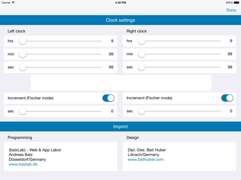 - allows you to optionally set individual increment settings (Fischer mode),