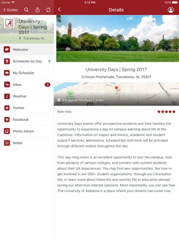 Bama Bound is an all-in-one app for your phone or tablet that allows users to access information on events such as Bama Bound New Student Orientation, University Days, and Sweet Home Capstone just to name a few.