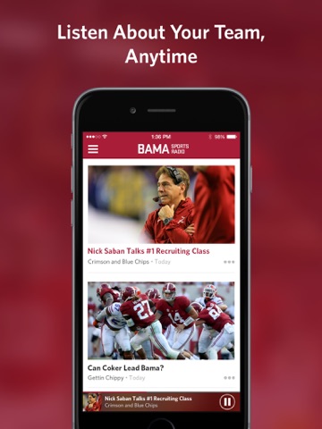Bama Sports Radio brings you the latest radio and podcasts about Alabama from names you know and trust. Whether youre strolling down the Walk of Champions or headed to another bowl, Bama Sports Radio helps you stay on top of the Crimson Tide from anywhere in the world!
