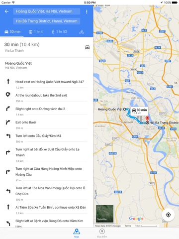 • Chỉ dẫn chi tiết đường đi theo các phương tiện: ô tô, xe máy, xe đạp, đi bộ, đi máy bay.