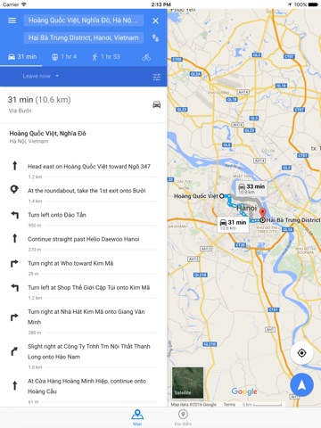 • Chỉ dẫn chi tiết đường đi theo các phương tiện: ô tô, xe máy, xe đạp, đi bộ, đi máy bay.