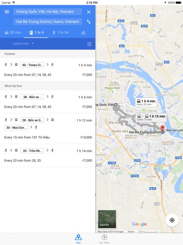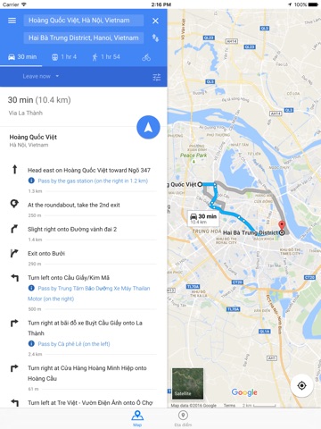 • Chỉ dẫn chi tiết đường đi theo các phương tiện: ô tô, xe máy, xe đạp, đi bộ, đi máy bay.