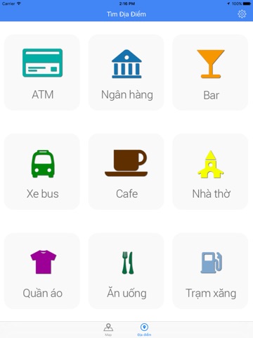 • Tổng hợp sẵn các danh mục tìm kiếm như: ATM, trường học, bệnh viện, quán cafe, cửa hàng, trung tâm mua sắm, điểm xe buýt...