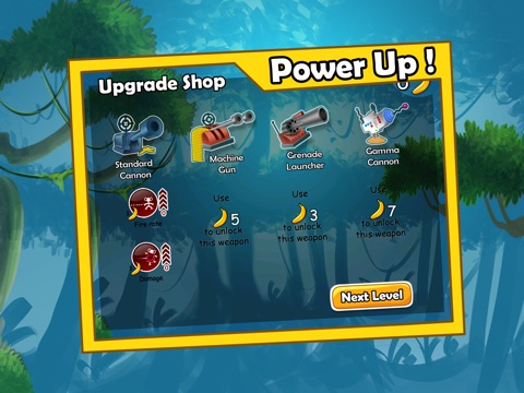 After each level you gain a banana point to for upgrading weapons, use them wisely
