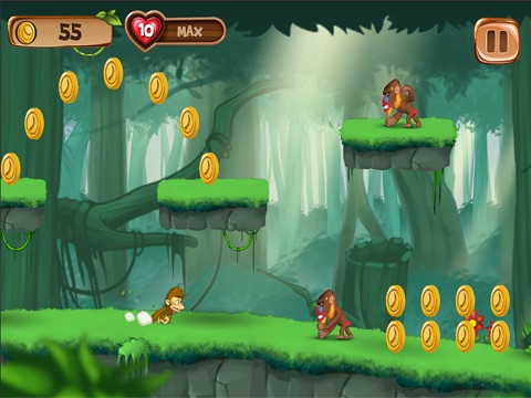 Help our monkey dash to blast his enemies in this super run and jump classic arcade game for children. Lets kick off a mega jumping and coin collecting mission on the jungle island! Get this parkour adventure and get ready for the gorilla revenge! Start racing towards the dark Temple and show what a jumper you are.