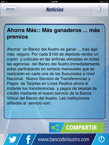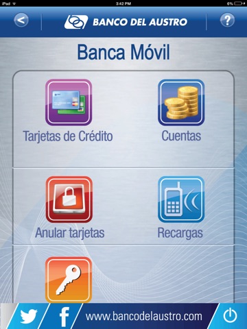 Con la nueva BancaMóvil consulta tus saldos y movimientos de cuentas, mínimos a pagar de tus tarjetas; realiza recargas de tiempo aire, paga a tiempo tus tarjetas, realiza transferencias entre cuentas Banco del Austro o hacia otras instituciones bancarias. Además, activa tu tarjeta de crédito para consumos en el exterior o difiere tus consumos corrientes al plan que prefieras y, en casos de emergencia, bloquea tus tarjetas desde tu smartphone o Tablet.