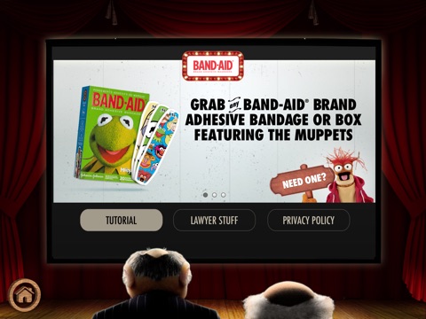 EVERY BAND-AID® BRAND ADHESIVE BANDAGE FEATURING THE MUPPETS BECOMES A STAGE! Point the app at any of the 6 large BAND-AID® Brand Adhesive bandages or boxes featuring The Muppets to create a magical portal that puts The Muppets in the palm of your hand. Featuring three unique real world performances from your favorite Muppets, this AR app is designed to make Muppets fans of all ages forget about their boo-boos. So, parents hold your iOS device over your child’s bandage to see Disney’s® The Muppets come alive!
