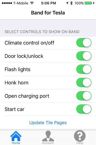 Band4Tesla turns your Microsoft Band into a remote control for your Tesla Model S. A new custom tile is added to your Band that you can use to check on the status of your vehicle and perform several useful remote control operations. Band4Tesla works with both version 1 and version 2 bands.