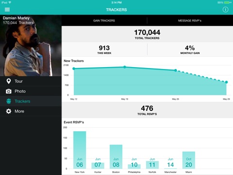 • Artists can directly message fans who have RSVP’d to their shows with targeted mobile push notifications.