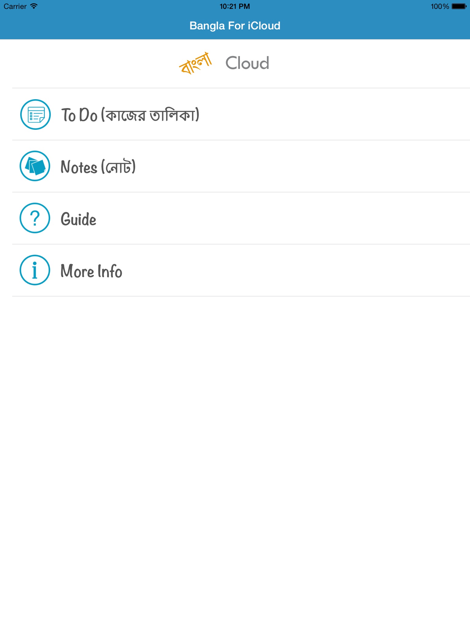 Bangla Cloud : ToDo List and Note Editor first time Bengali App integrated with your iCloud Account. Access TodoList & Note from your any device. You create your ToDo Task , write note easily with Phonetic Keyboard. It uses Avro Phonetic keyboard layout. This app has most effective user friendly phonetic keyboard.