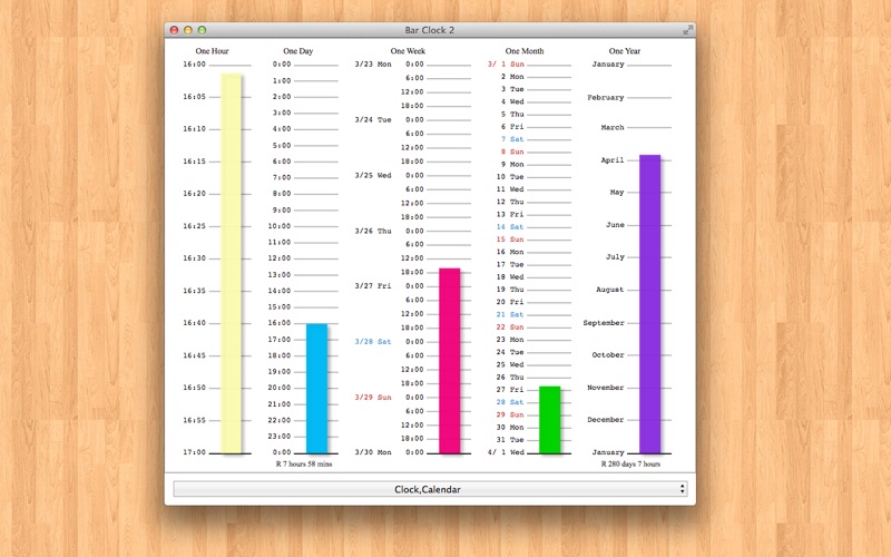 This app display the currenct time as the bar chart of the cycle every one day, one week, one month, one, year.
