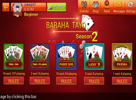 Baraha Tayo is the first and only card game app with 5 popular Pinoy Card Games.