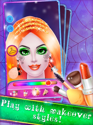 Help the royal princess to choose the best fashionable halloween costume. Choose the different magical masks and hats for her. Charming earrings and luxury shoes will complement the image of the future queen of the party. Step by step an exclusive costume for Halloween will be ready! In addition you can wear a beautiful make-up for the Princess. Bright lipstick with mixing colors, shadows, etc. - you can use all of that fashionable tools. Choose colorful and memorable hairstyles. Let the future queen of Halloween shines and charms with her beauty. Become a super stylist and show your creativity on the eve of this magical holiday! All the fashion costumes for the festival are at your disposal, so you can create and invent new appearances. You can choose any color of eyes for the princess, change skin color and eyebrows. There is a huge palette of colors for make-up, create royally charming appearance for a young lady. Be in trend, choose fashionable looks, create a luxury make-up and choose an exclusive dress. You will become a make-up artist and stunning stylist in Barbara Halloween Carnival!
