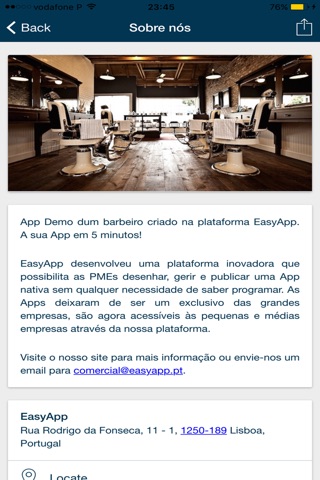 App de uma barbearia criada na plataforma EasyApp. A sua App em 5 minutos!