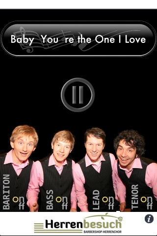 With this App you can sing Barbershop tags, short harmonic pieces of music. For that you can use the sample files included in this App to listen to all four voices, the tenor, the baritone, the bass and the melody part, the lead. If you want to sing i.e. the bass part, just tap on the bass guy - the second from the left - to mute this part of the song and sing it by your own.