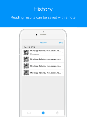 You can immediately start reading after the application launch. Just reflect a QR code that you want to read on the screen, reading is complete.