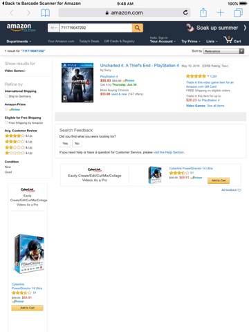 - Scan barcodes and view the product on Amazon in seconds
